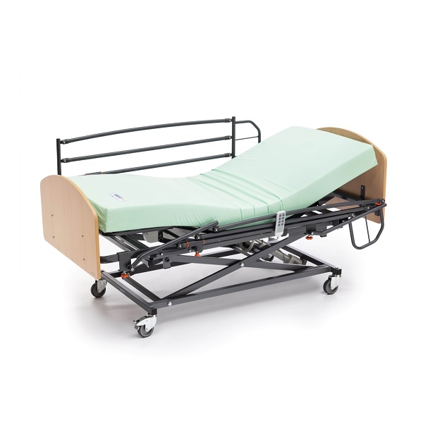 Cama eléctrica con carro-elevador completa con cabecero-piecero, barandillas y colchón.